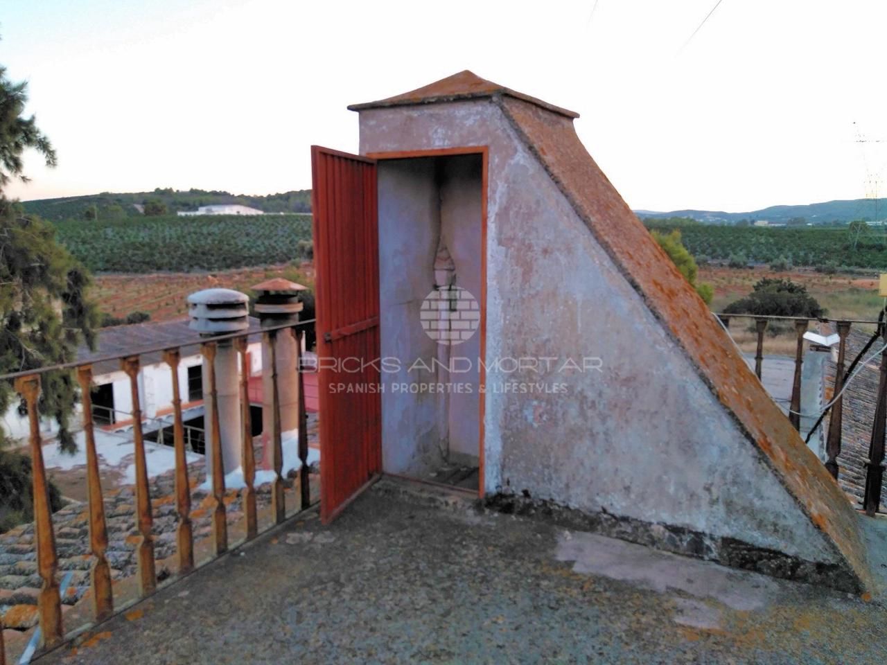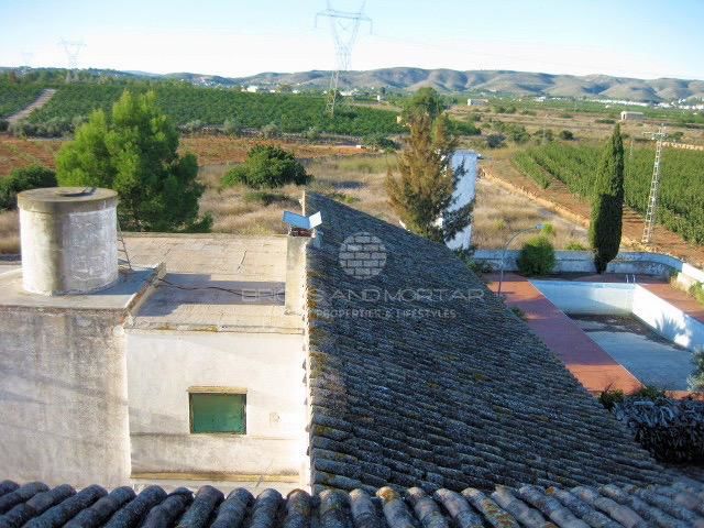• Main house of 137 m2 of plant and two heights with chamber (air chamber or attic). It has a roof with 4 waters. Marble stacks in the kitchen. Mobila beams. Terrace-viewpoint where the view of the entire estate is dominated and the bell towers of the towns of the 6 nearby towns can be seen: L’alcudia, Montortal, Masalavés, Carlet, Tous and Alzira.