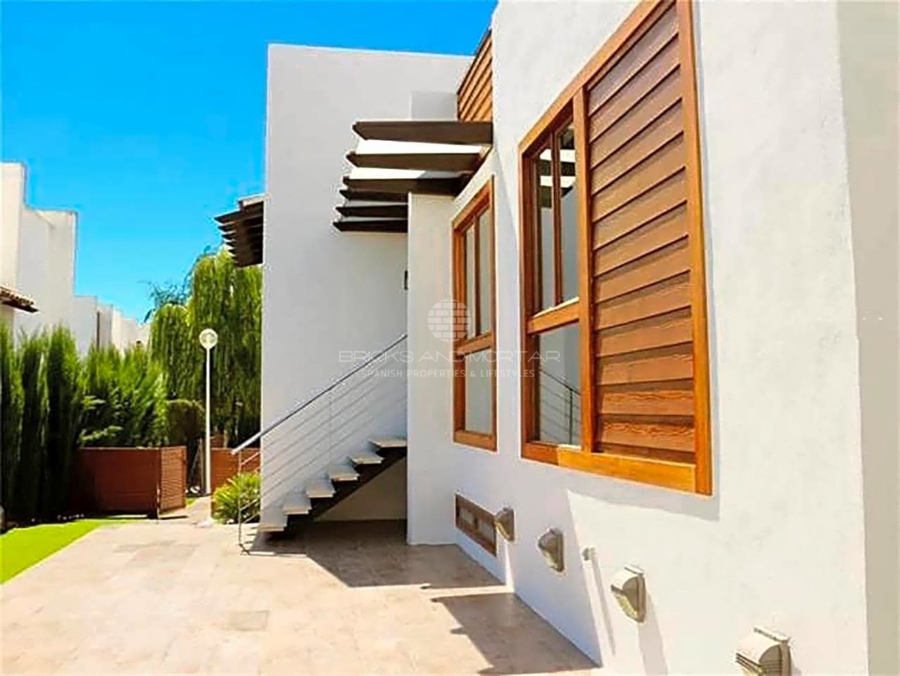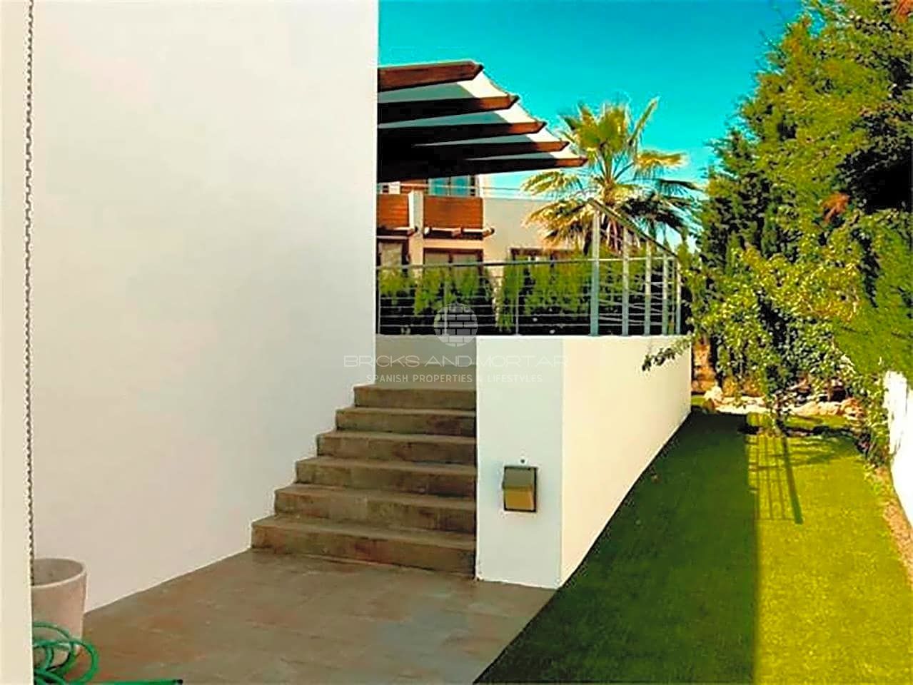 The 459m2 plot consists of 2 terraces- perfect for outdoor living, a low maintenance garden, a private garage and easily adaptable spaces suitable for the construction of a bar, private pool area etc.