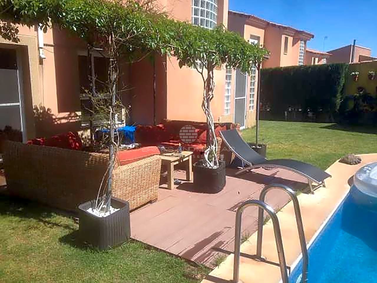 Also on the 404m2 urban plot is a filtered swimming pool, landscaped gardens with automated sprinkler system, paellero barbecue and outdoor dining area.
