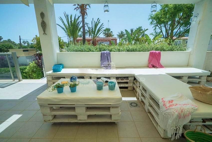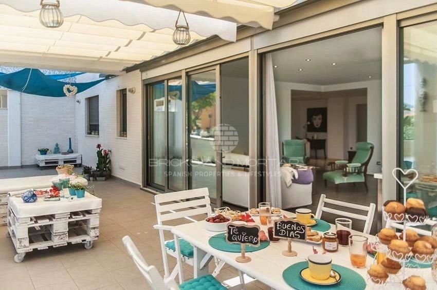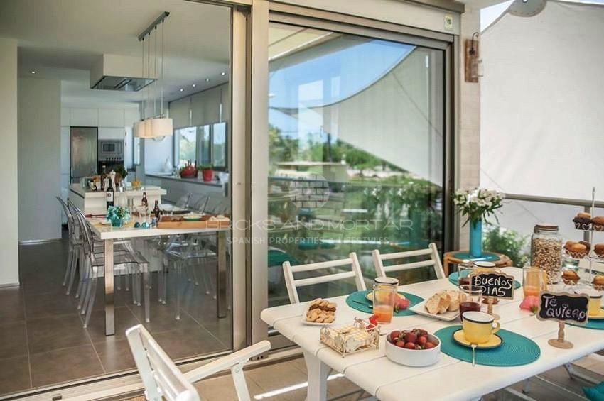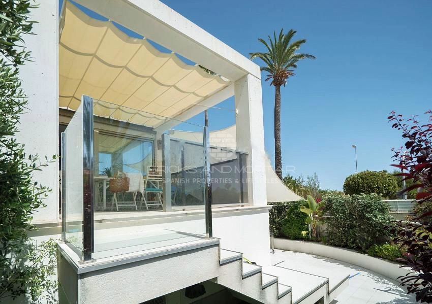 Spectacular fully equipped avant-garde design house, located 70 meters from the beach. Crta. De las Marinas de Dénia – Alicante. Located in a private urbanization with an outdoor pool and a heated indoor pool, a playground and green areas. Large private terrace, spacious and barbecue,. 4 double bedrooms, 3 complete bathrooms, 2 en suite, 2 living rooms, fitted kitchen, several terraces on two levels, 2 parking spaces and 2 storage rooms. Surrounded by all services (Restaurants, supermarkets, shops, etc.) 5 minutes from the center of Dénia.
