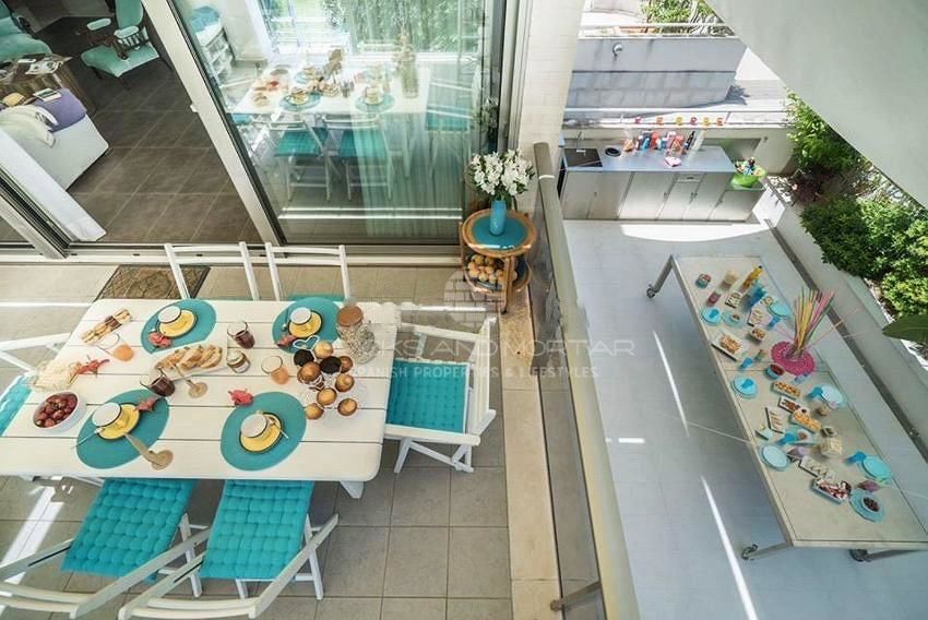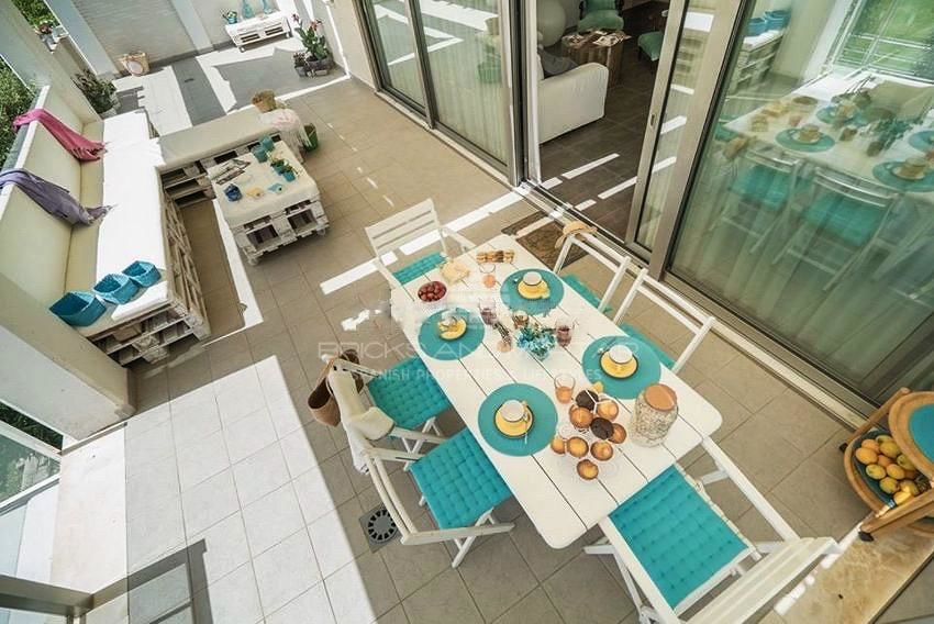 Very spacious, bright apartment with huge windows. It includes 4 double bedrooms, 2 Master Sweets with integrated bathrooms, 2 double bedrooms, 3 fully equipped bathrooms, 1 with a hydromassage bathtub. 2 living rooms, 1 with a chill out area inside the house and a second with comfortable armchairs, a modern kitchen with an open concept and fully equipped. Laundry area, which includes washing machine and sink. 2 accesses to the spacious private terraces of the apartment, one of them with barbecue and seating area, unique design with sun protection sail.