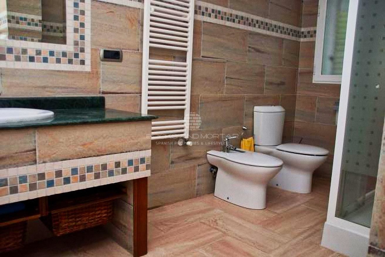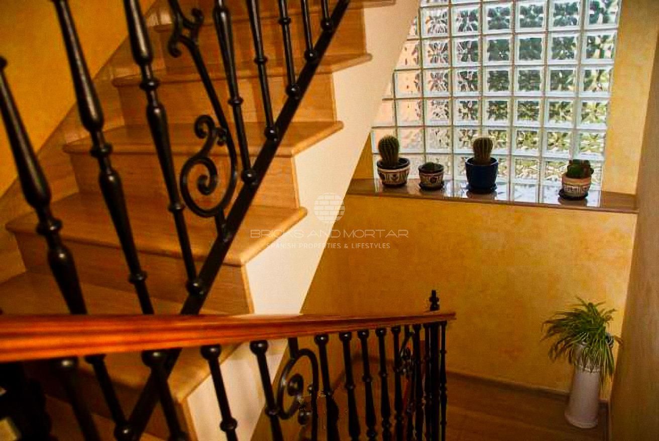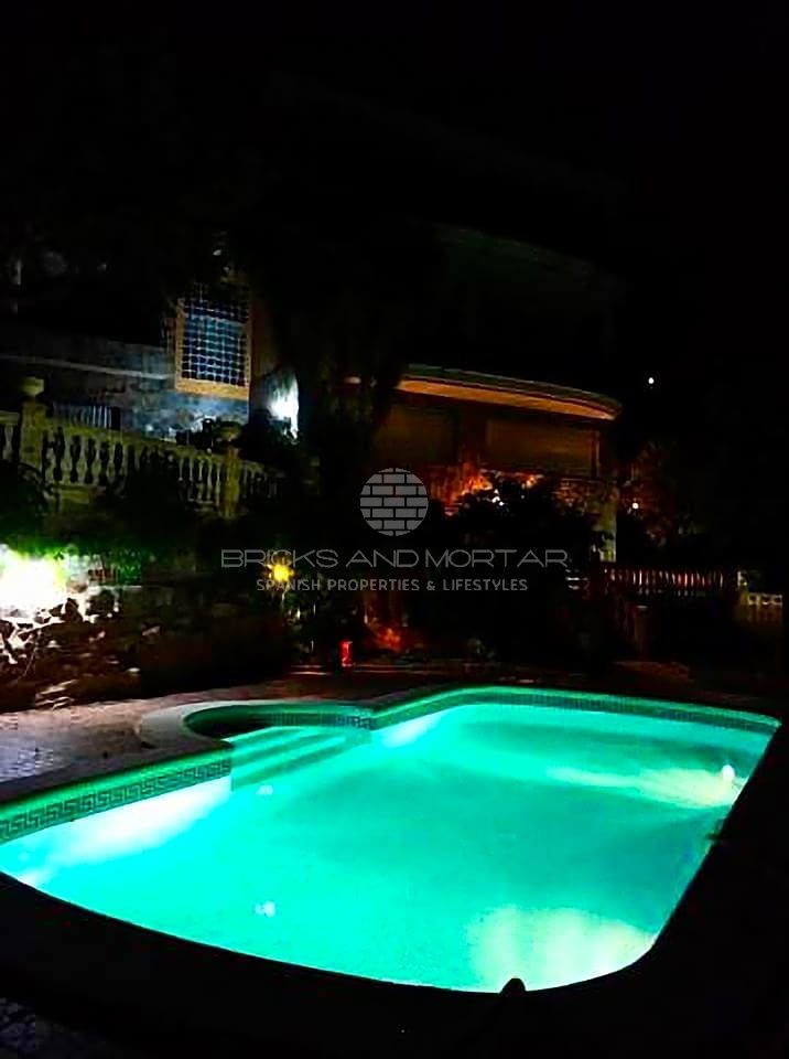 Also on 950 m2 urban plot is a fully filtered swimming pool with solarium, an outdoor kitchen with paella barbecue, a private garage, large covered terrace perfect for outdoor dining, landscaped gardens with manicured lawns and a non-slip concrete patio.