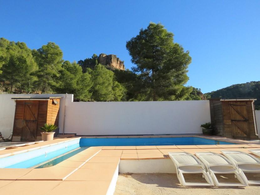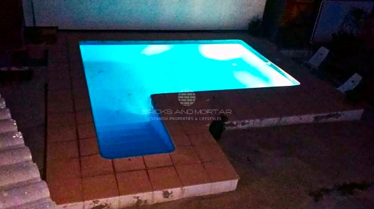 a fully filtered ´L´ shaped swimming pool, solarium, outside toilet and changing room.