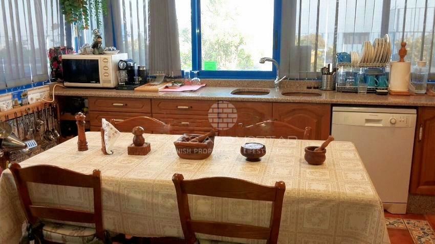 Great house in a private urbanization, very quiet, stunning views, northeast facing overlooking the sea. Summer pool and heated winter pool. 3 bedrooms, 2wc, oak kitchen, 110m2 terrace overlooking the sea with 95m2 garden, air conditioning, double glazed windows, very good qualities. Storage and parking space.