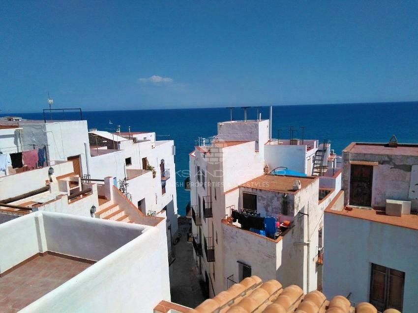 House in the old town of Peñíscola located on a commercial street. It consists of two houses on three floors and a ground floor. Two kitchens, two bathrooms, a toilet and eight bedrooms. The house has 100 square meters including the solarium with views of the sea and the castle.