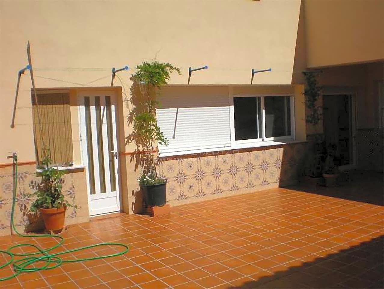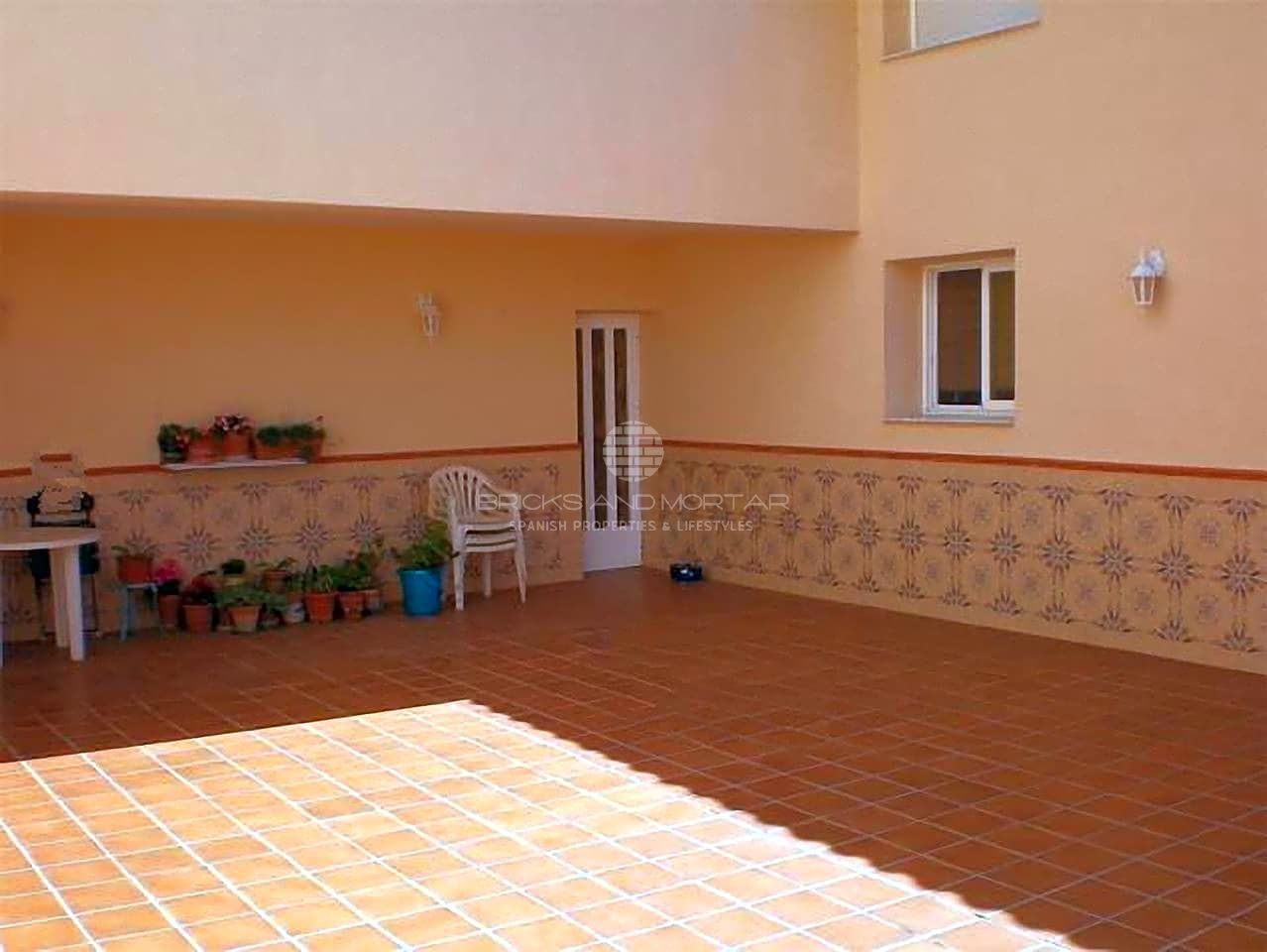 Also on 466m2 fully urban plot is an outdoor paella barbecue, a private garage, large covered terrace perfect for outdoor dining, back garden of and printed concrete patio.