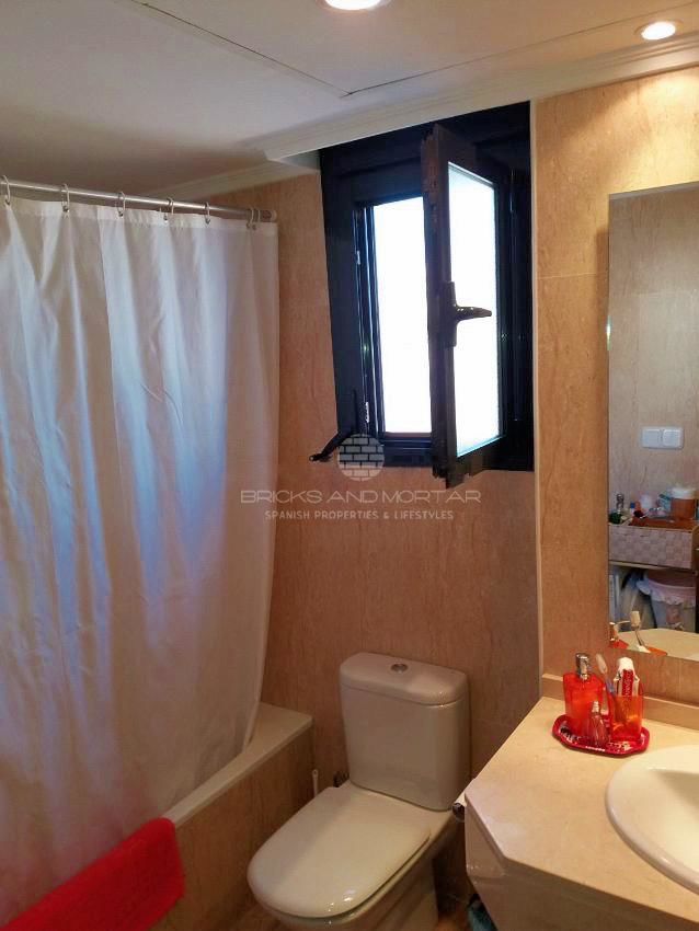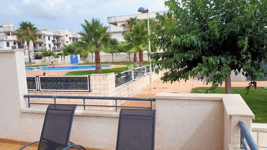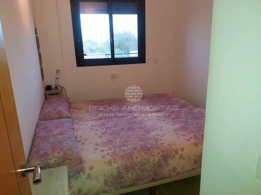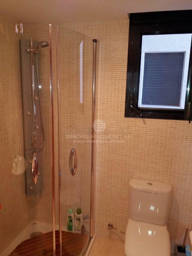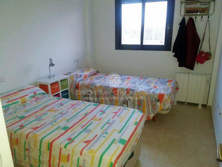 Almost new apartment furnished with everything you need to move into. It has a covered terrace of 15m, an uncovered terrace of 44m and a garden of 85m. It consists of two bedrooms with fitted wardrobes, two bathrooms, spacious living room with views and access to the terrace, fully equipped kitchen and utility room. 2 large garage spaces and storage room. Heat and cold pump. Bathroom with hydromassage shower and the other with bathtub. Built-in wardrobes in bedrooms. Common areas: swimming pool, paddle tennis, sauna, jauzzi, gardens and children’s play area.
