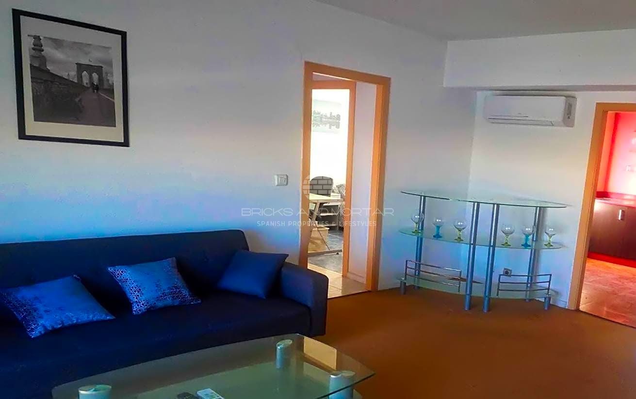 To be sold fully furnished this beautiful opportunity with a total build of 120m2 consists of 3 double bedrooms ,a guest bedroom, a storage room, a large balcony (terrace 15m2 ), a fully fitted and equipped kitchen, 2 fully equipped family bathrooms (one in the guest room) and a large exterior facing lounge/dining room .