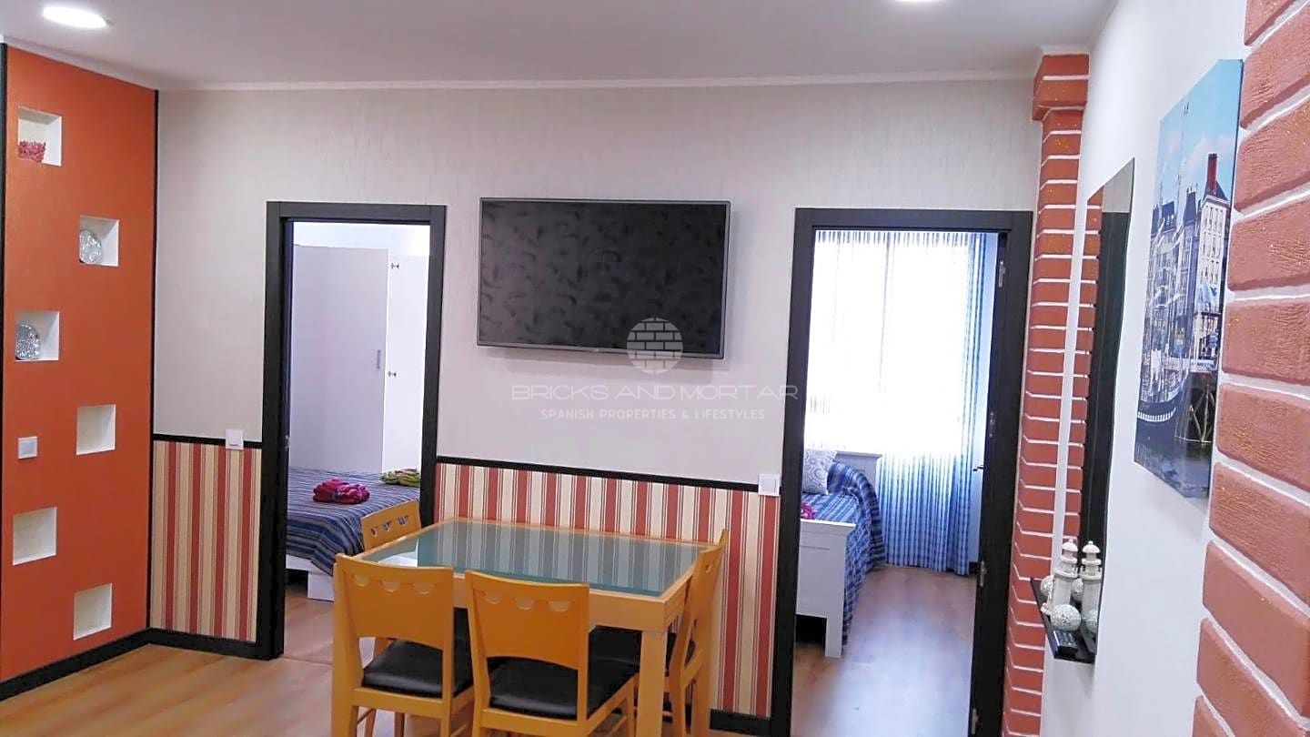 To be sold fully furnished this excellent opportunity with a total build of 70 m2 consists of three double bedrooms, a fully fitted and equipped kitchen, large exterior facing lounge/dining room and a fully equipped family bathroom.