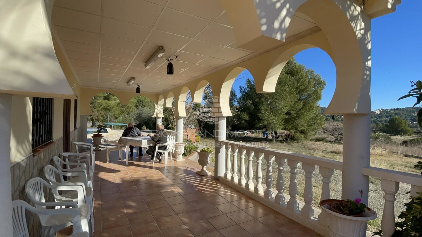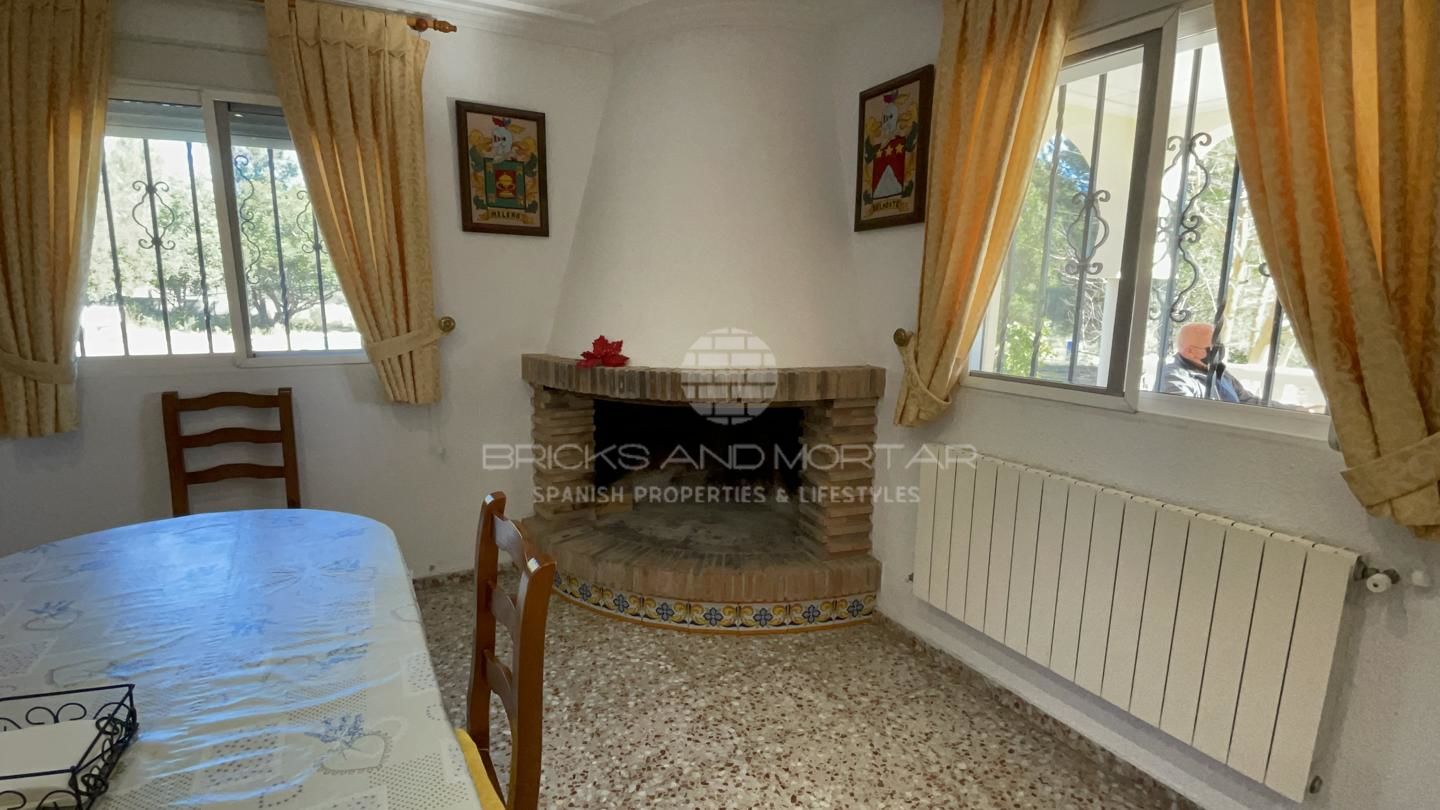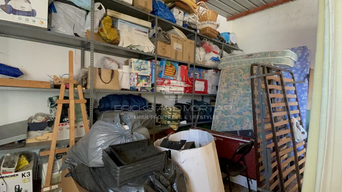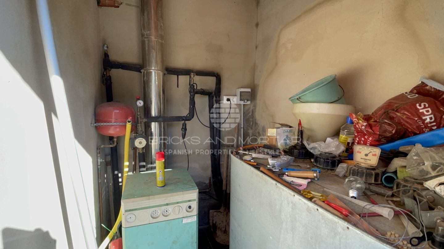 This spectacular house with a large plot of 11,033 square meters, has unobstructed views, as it does not have chalets that disturb these views. It has two solarium terraces, above the house. The laundry and ironing room has large pantries. Two impressive and very large porches where you can enjoy the wonderful views that surround the large plot with entrance from two streets. Large covered parking area for at least 4 cars. It has a one hundred square meter warehouse, currently used as a nightclub. What’s more. It has 2 storage rooms, external to the house, that could be enabled as a guest house. It has an automated irrigation system for the different plantations it has, namely: fig trees, medlars, apricots, almond trees, laurel, etc…