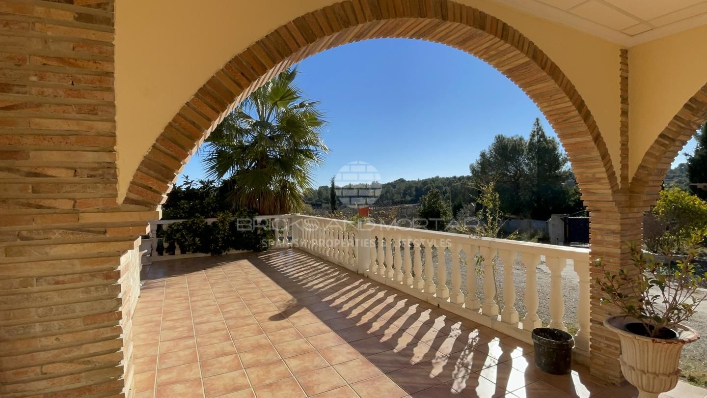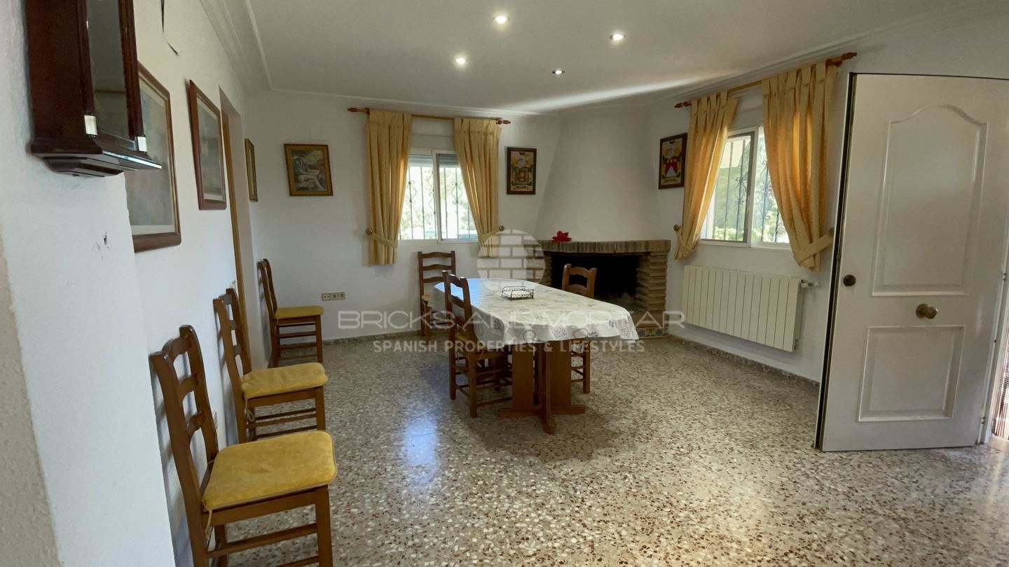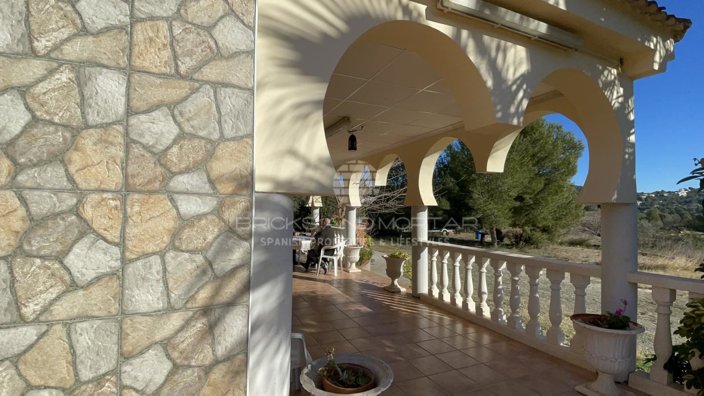 This spectacular house with a large plot of 11,033 square meters, has unobstructed views, as it does not have chalets that disturb these views. It has two solarium terraces, above the house. The laundry and ironing room has large pantries. Two impressive and very large porches where you can enjoy the wonderful views that surround the large plot with entrance from two streets. Large covered parking area for at least 4 cars. It has a one hundred square meter warehouse, currently used as a nightclub. What’s more. It has 2 storage rooms, external to the house, that could be enabled as a guest house. It has an automated irrigation system for the different plantations it has, namely: fig trees, medlars, apricots, almond trees, laurel, etc…