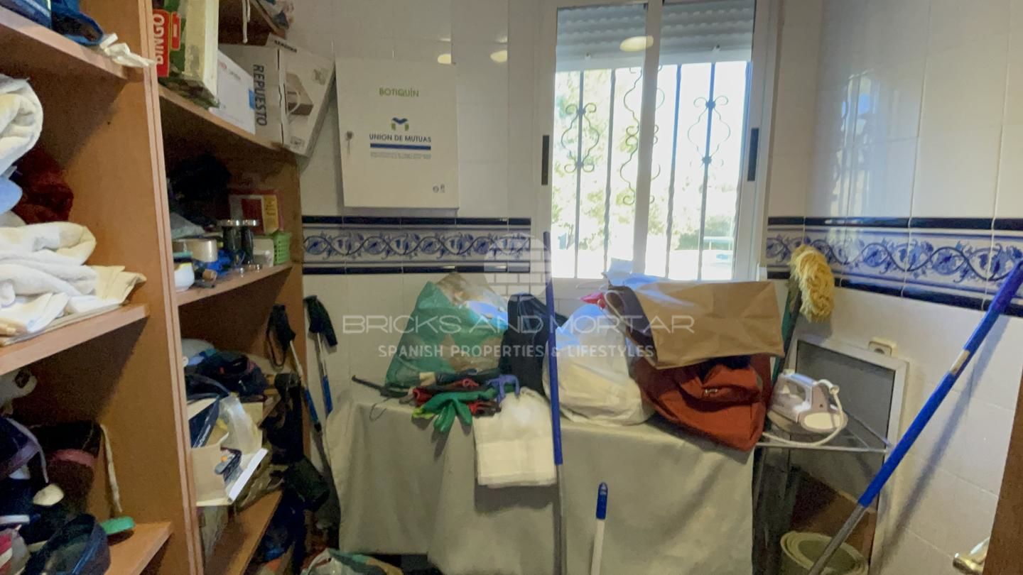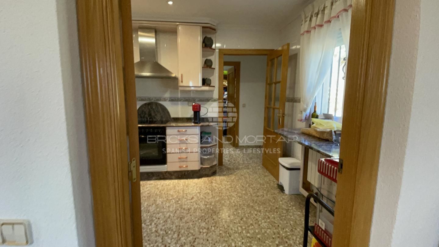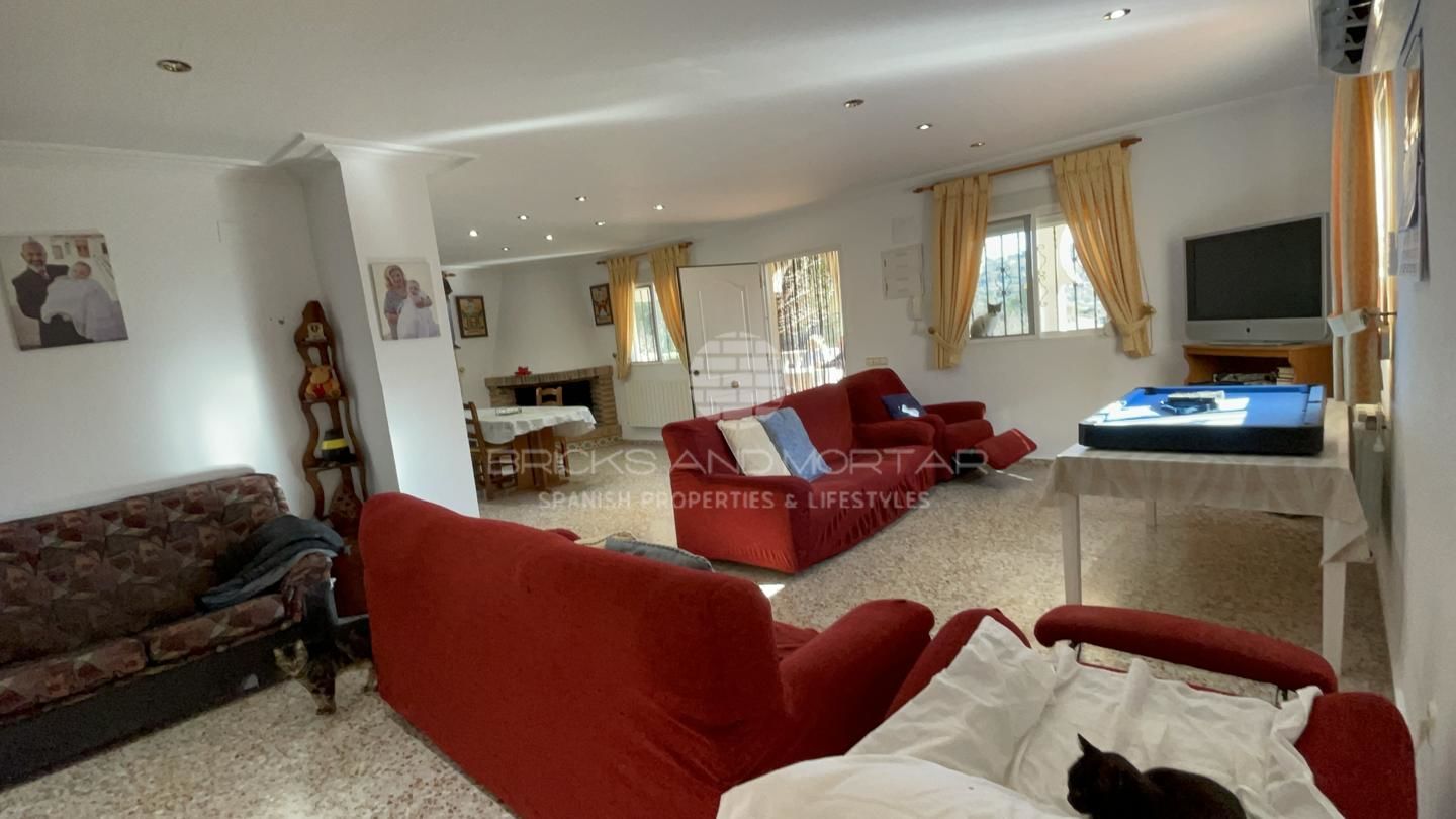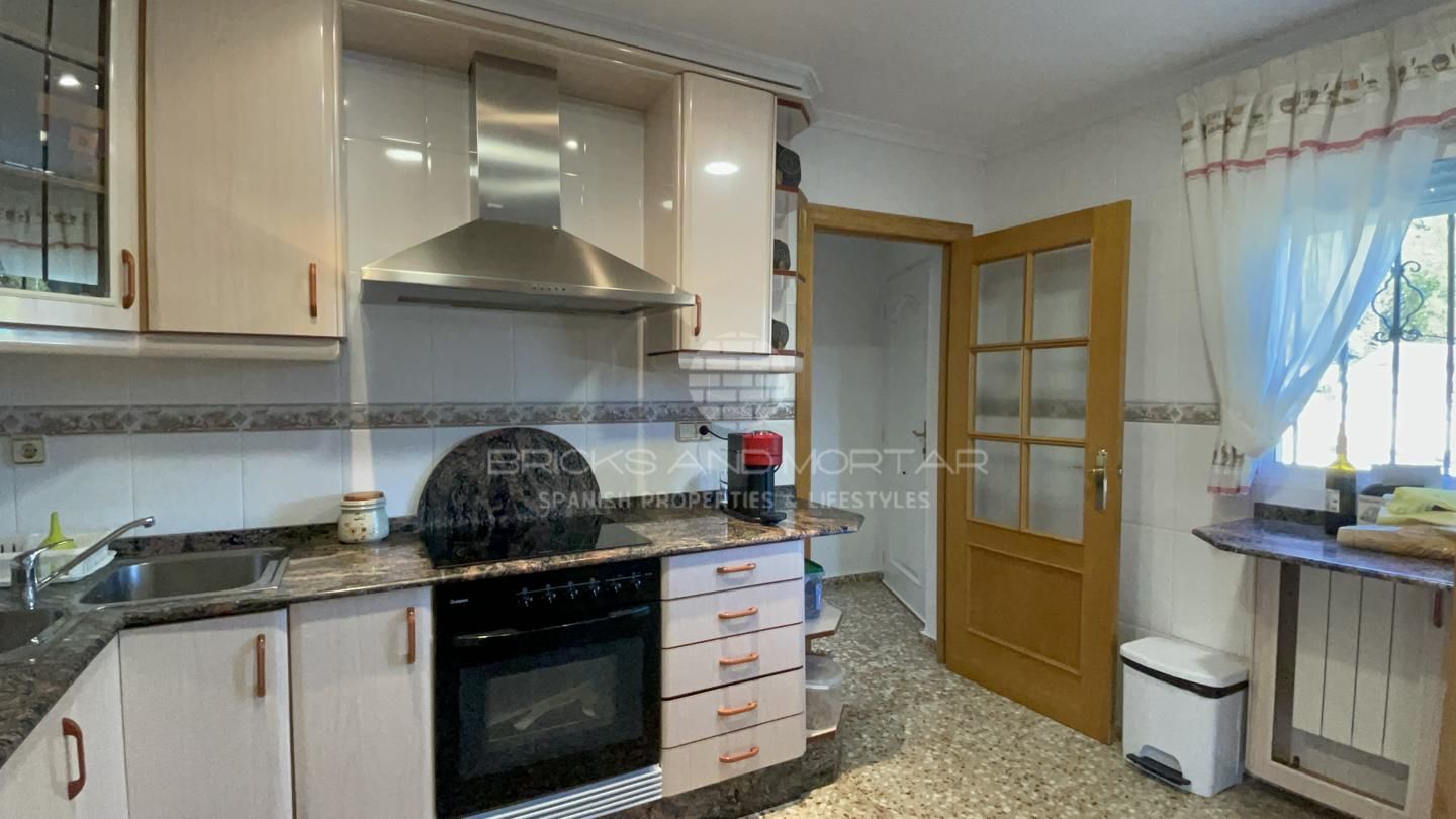 This spectacular house with a large plot of 11,033 square meters, has unobstructed views, as it does not have chalets that disturb these views. It has two solarium terraces, above the house. The laundry and ironing room has large pantries. Two impressive and very large porches where you can enjoy the wonderful views that surround the large plot with entrance from two streets. Large covered parking area for at least 4 cars. It has a one hundred square meter warehouse, currently used as a nightclub. What’s more. It has 2 storage rooms, external to the house, that could be enabled as a guest house. It has an automated irrigation system for the different plantations it has, namely: fig trees, medlars, apricots, almond trees, laurel, etc…