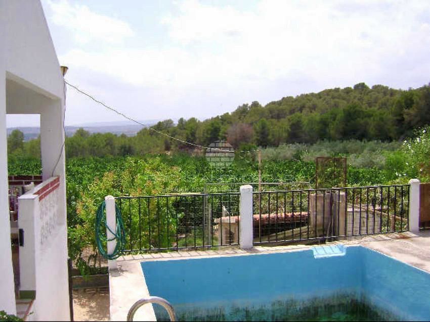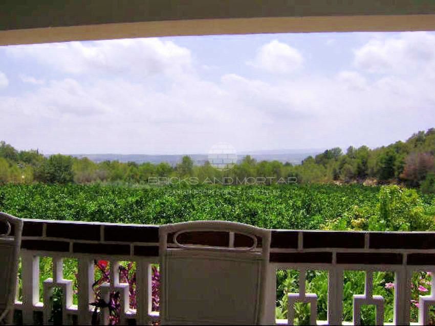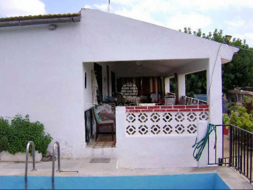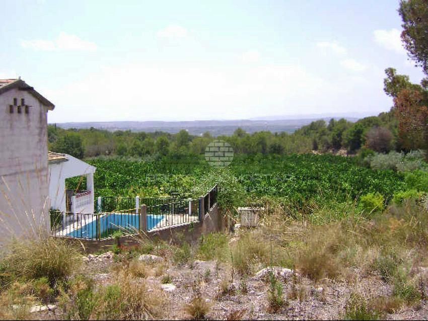 Quiet villa with spectacular views, large irrigated plot with orange trees in production (drip irrigation). Big pool. The irrigated plots with orange trees and the upper plot with chalet are also sold separately.