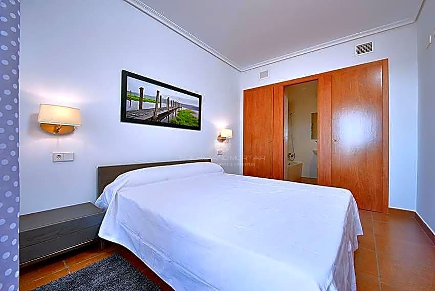 The single-level apartment apartments consist of two spacious double bedrooms (the master bedroom with en suite bathroom), a fully equipped family bathroom with tub and an open-plan fitted kitchen and lounge which accesses the terrace through patio doors.