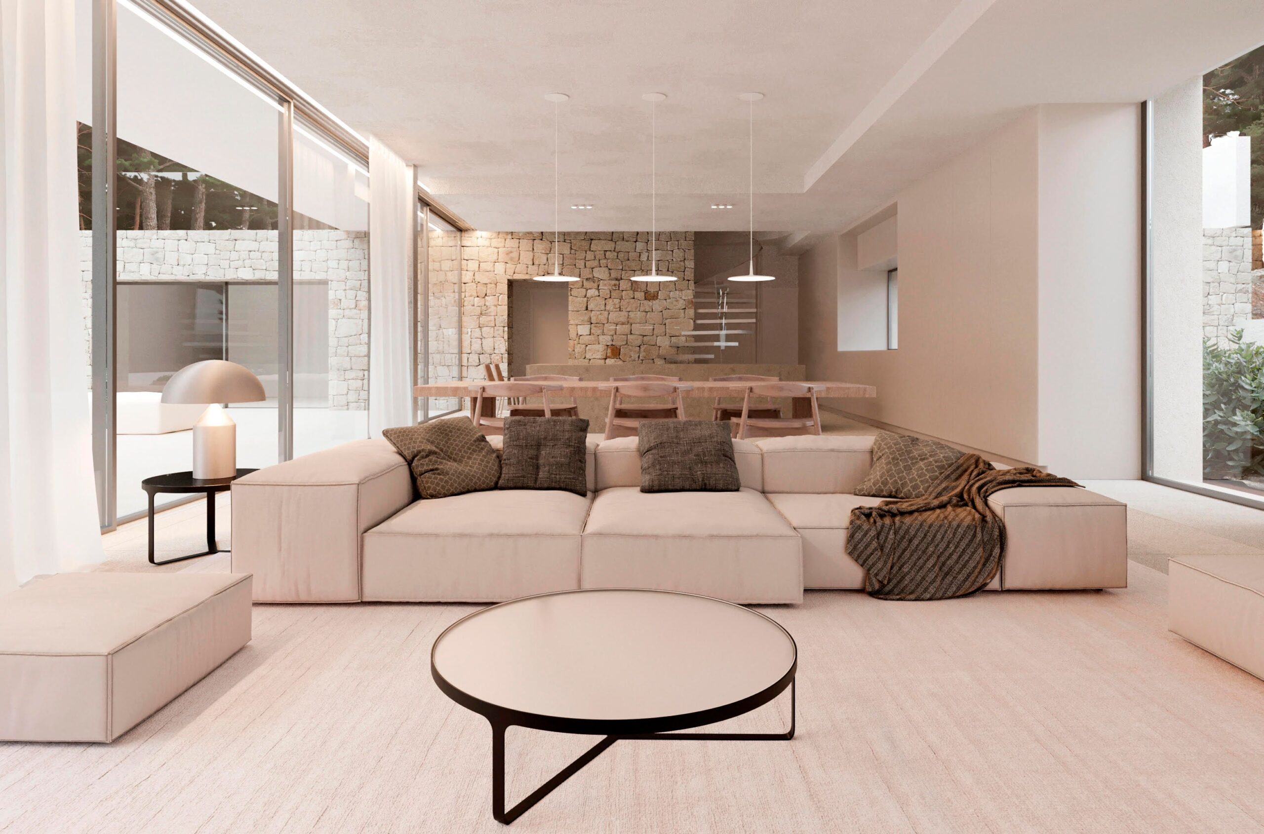 Luxury villa distributed over 3 floors: ground floor with a large bright living room next to the open kitchen with kitchen island, a guest toilet and a bedroom with bathroom en suite. Outside this floor is the infinity pool, with a large terrace and barbecue area. On the upper floor we find 3 large bedrooms with their bathroom en suite, and their own balcony where you can enjoy the beautiful views offered by this villa. Outside this floor is the garage. Finally, the basement, we find a storage room of 221 m2.