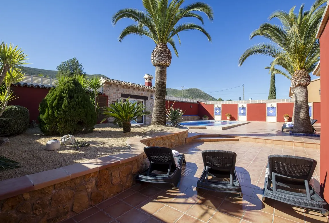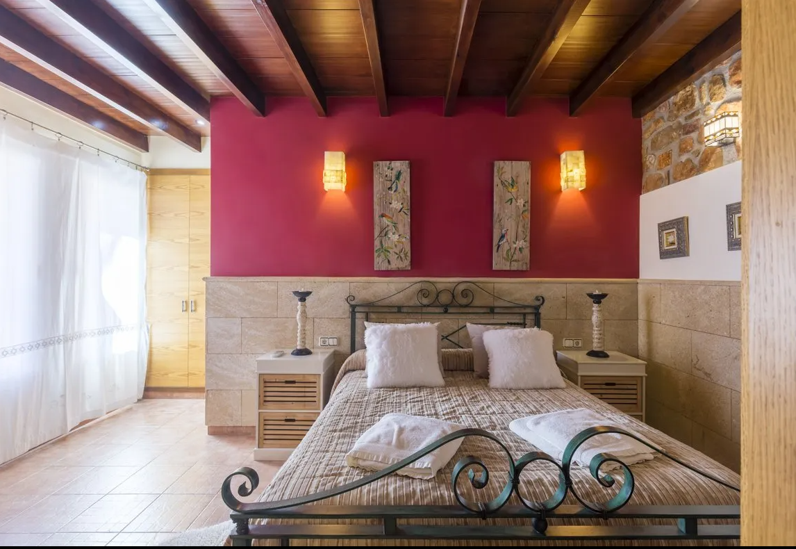 CASA EL SEQUER: 270 m2 and restored in 2005. It is distributed in a hall, living room with pellet fireplace, 5 bedrooms with air conditioning hot / cold, 3 bathrooms, kitchen with central island and fully equipped, laundry room, glazed jacuzzi, barbecue, porch, chill-out area, private pool, gardens and parking for 5 cars.