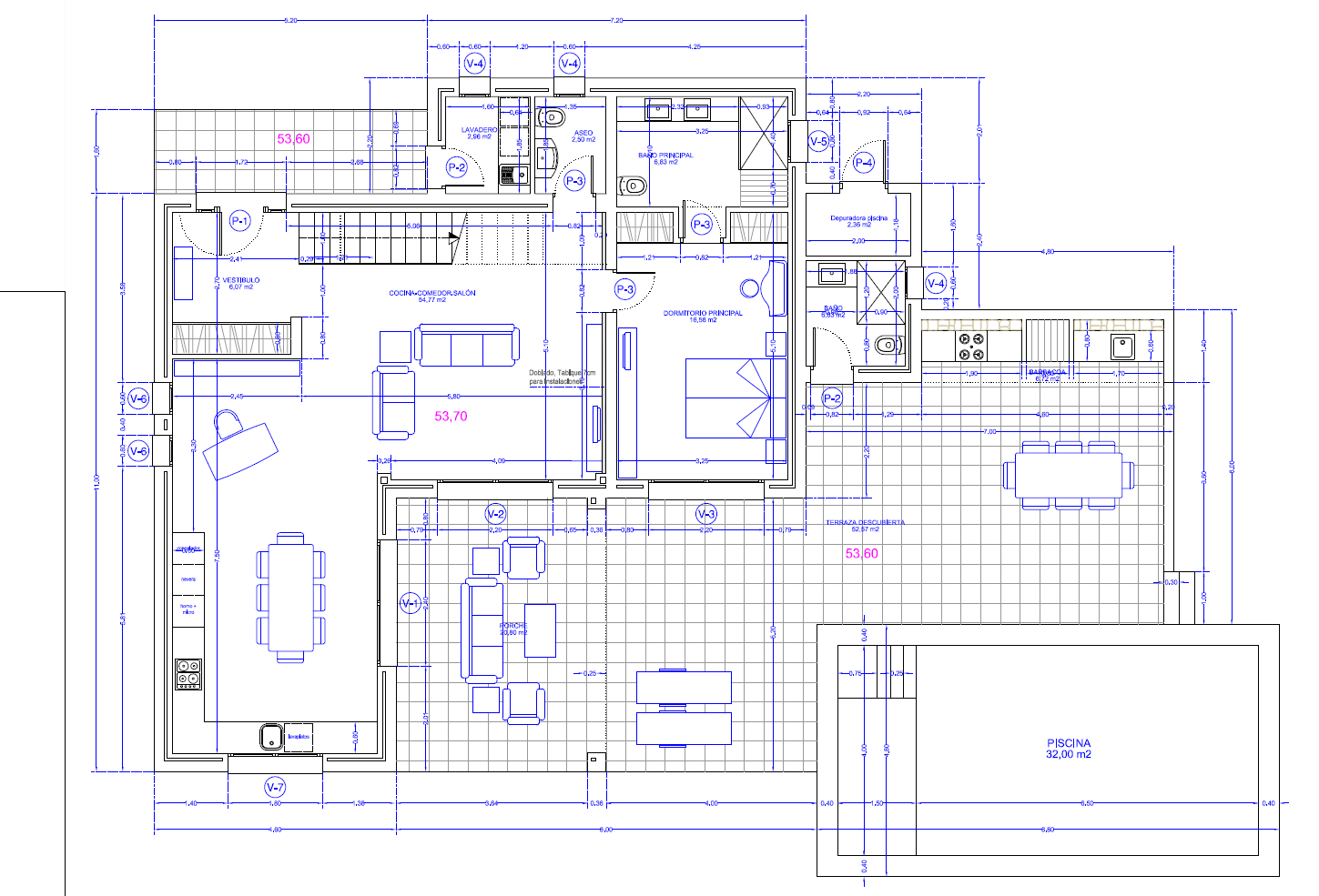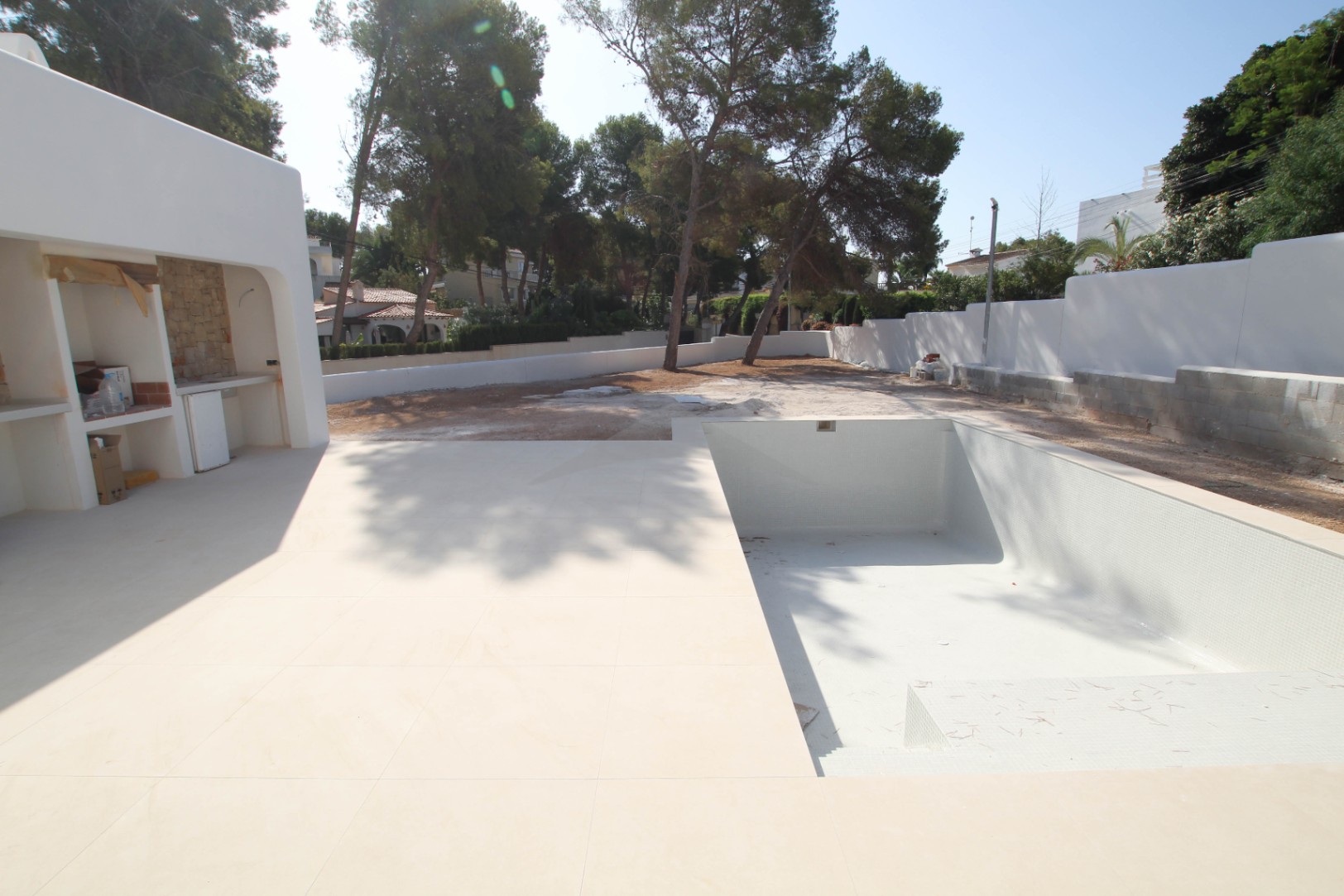 On the Costa Blanca you enjoy 300 days of sunshine a year making outdoor living very important. This property has a large south-facing plot with a all the comforts of the outdoors. Outside we find a large terrace, both covered and an open terrace around the pool. Under the covered terrace we find the outdoor kitchen/bbq area, where there is also an extra toilet and shower, it will also be possible to park on the property’s own ground