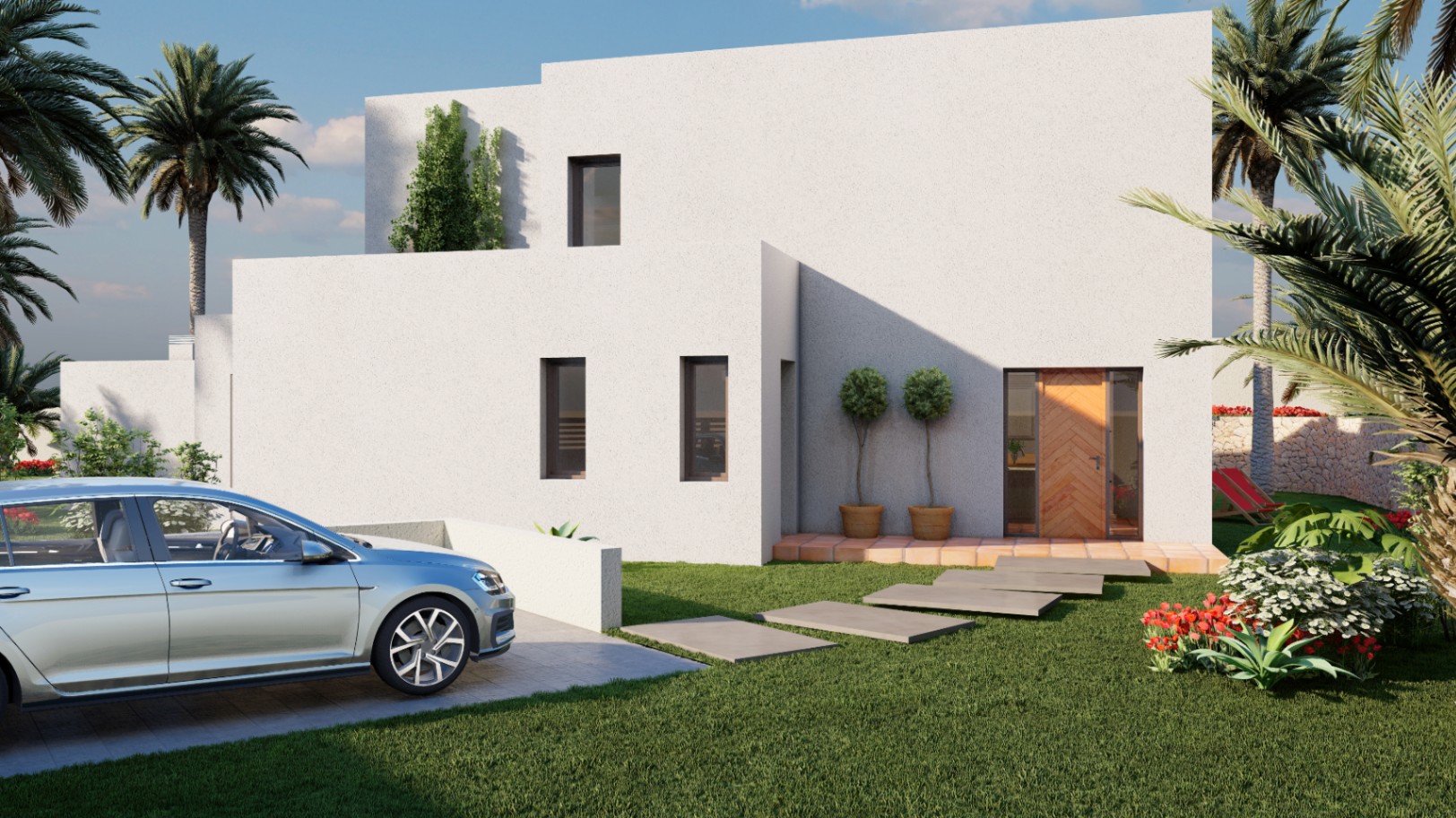 The property will consist of a spacious living/dining room with an open-plan fully fitted kitchen that connects to the outside terrace through large windows. Also you will find 3 double bedrooms each with their own bathroom and additional guest toilet, storage room and separate laundry room.